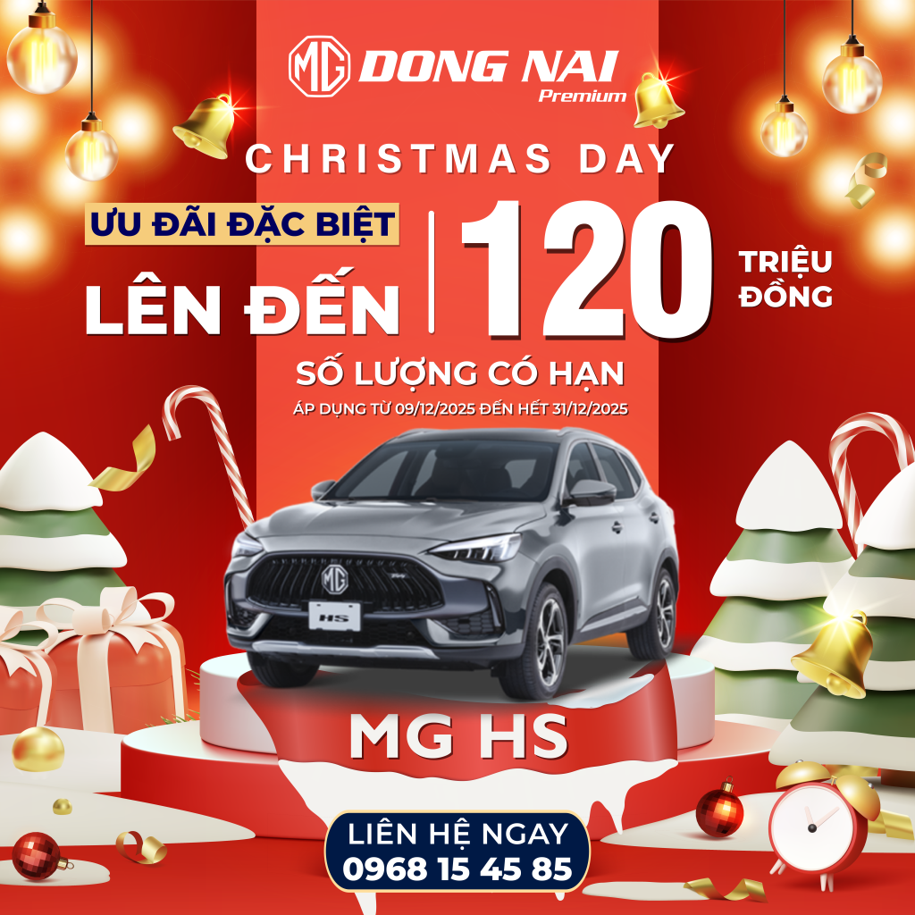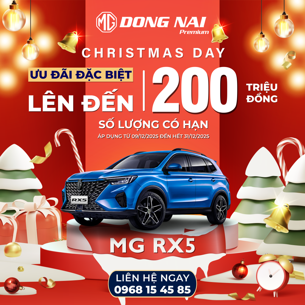 09/12/2025MG Đồng Nai Premium chính thức khởi động chương trình ưu đãi lớn nhất mùa lễ hội – Christmas Day 2025, mang đến mức giảm giá hấp dẫn lên đến 200 triệu đồng cho nhiều mẫu xe hot như MG5 MT, MG HS và MG RX5. Đây là cơ hội vàng để khách hàng sở hữu xe MG với mức ưu đãi tốt nhất cuối năm.